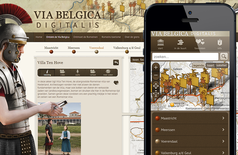 De Romeinse weg die vroeger door Zuid-Limburg liep zichtbaar gemaakt. Ga met de app op pad en bekijk het landschap door de ogen van een Romein. De website geeft veel aanvullende, verdiepende info.